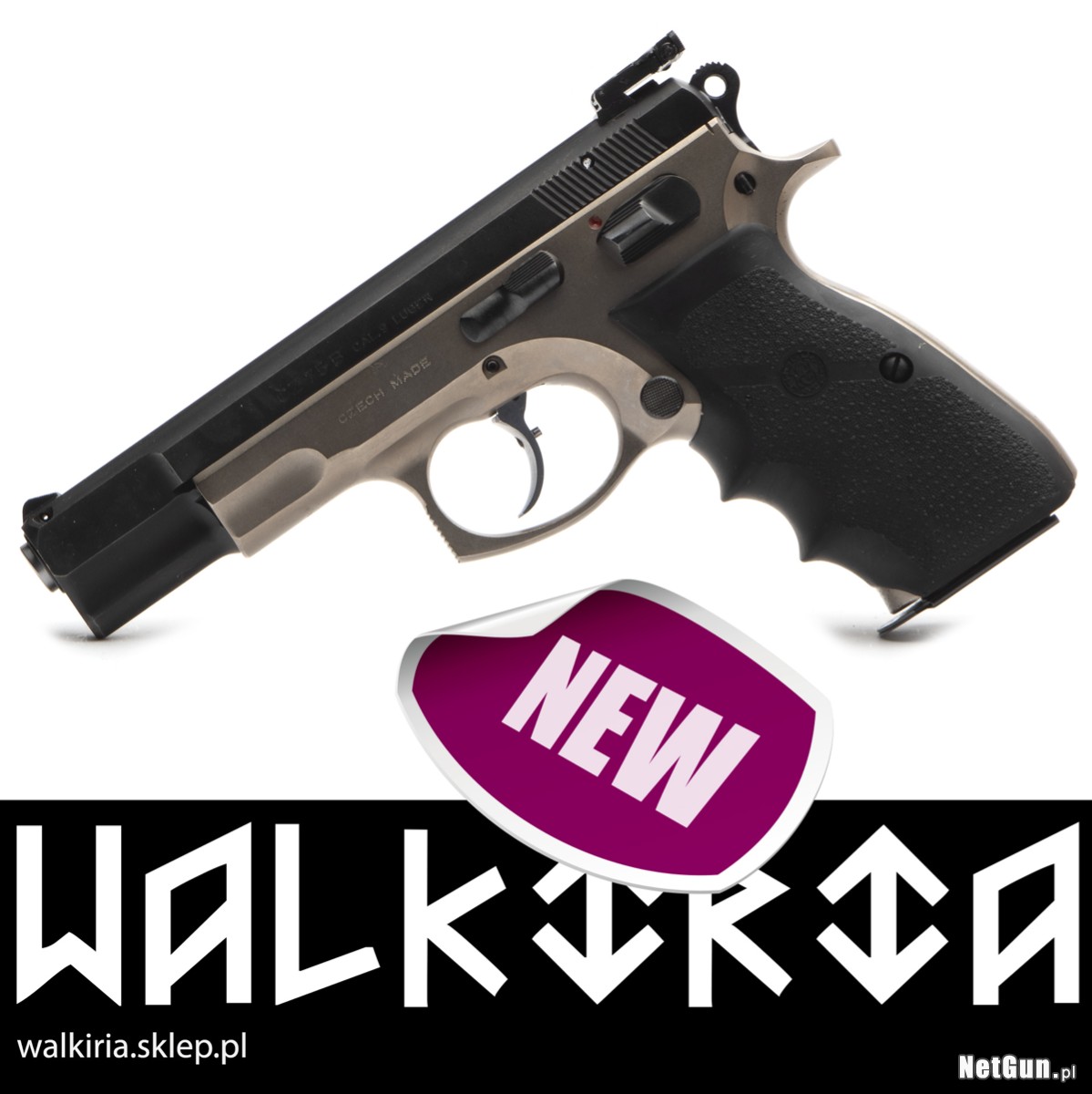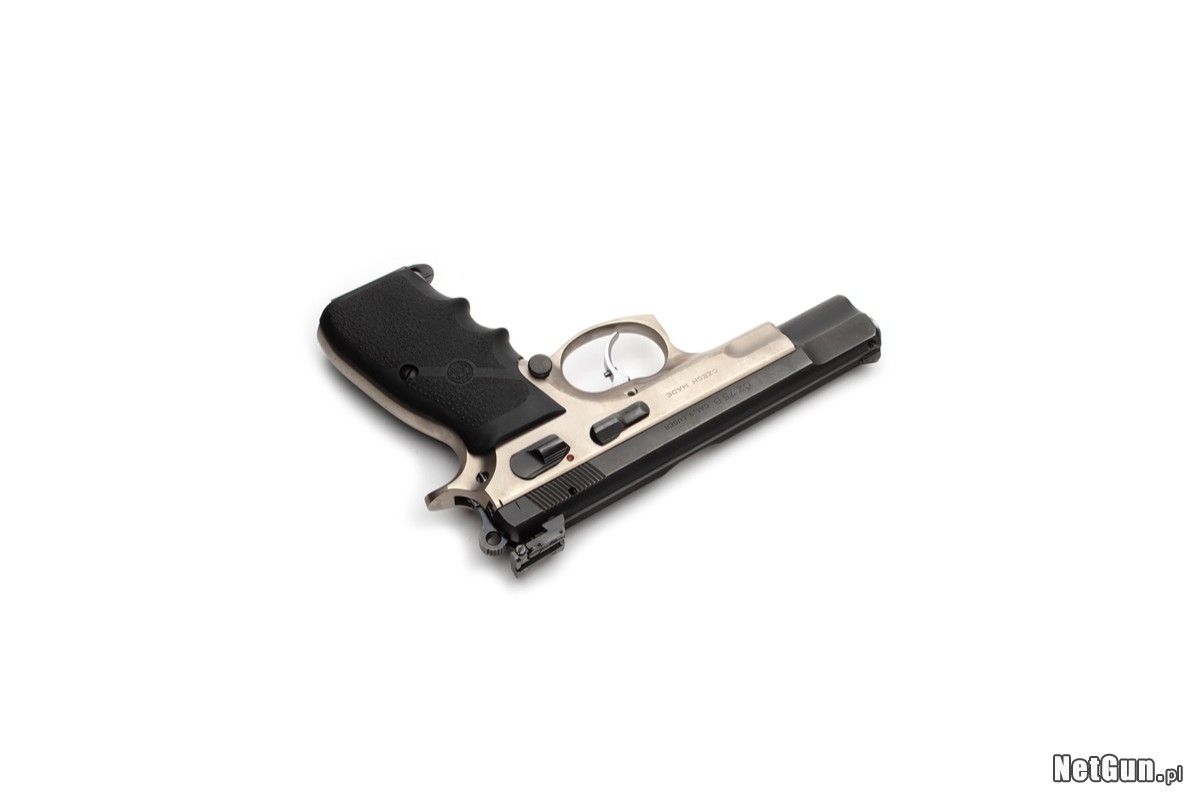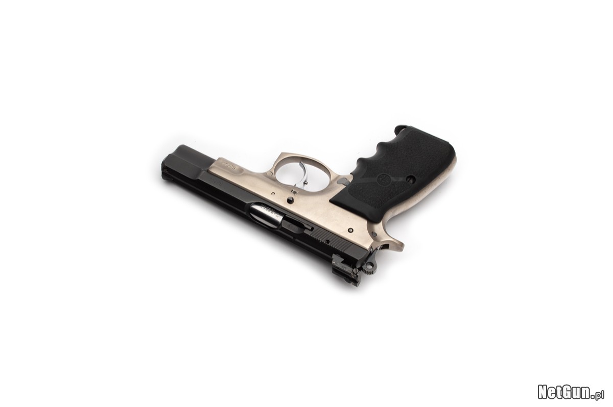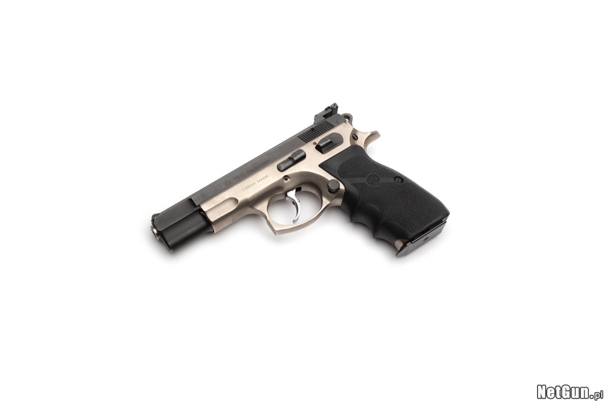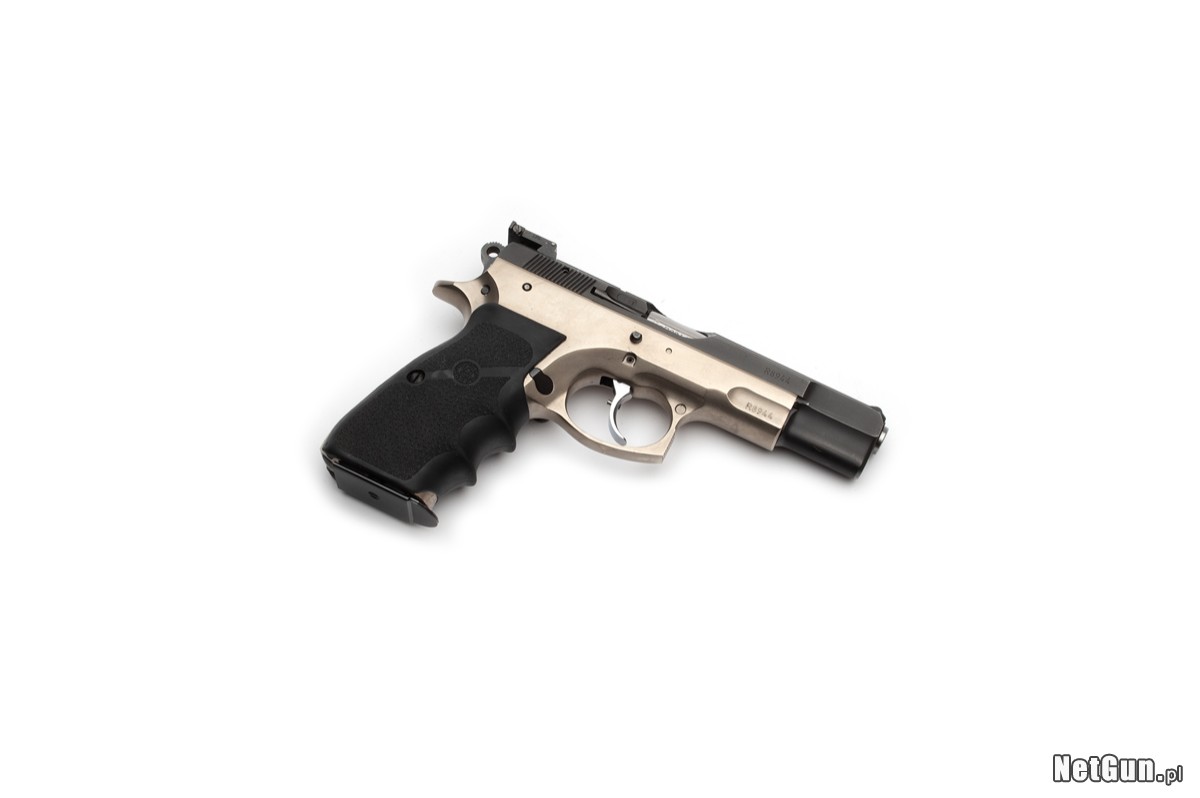 Pistolet samopowtarzalny centralnego zapłonu CZ 75B, kaliber 9x19. Legendarny pistolet, któremu trudno dorównać większości współczesnych "polimerów". Bardzo rzadki egzemplarz o charakterze kolekcjonerskim, z 1993r., sygnowany Czech Made. Po upadku komunizmu, rozpadowi Czechosłowacji towarzyszyła duża niepewność związana z przyszłością kraju - czy nadal razem, czy osobno oraz jak ma brzmieć oficjalna nazwa kraju. Ten egzemplarz jest niemym świadkiem tamtych czasów. W 1993r. wciąż produkowano egzemplarze Made in Czechoslovakia ze starych zapasów, następnie bardzo krótko Czech Made (niepoprawna forma, którą można żartobliwe przetłumaczyć Czech zrobił) i w ostatecznej formie, Made in Czech Republic. Dodatkowo jest to wersja duotone z powłoką w kolorze szampana, jedna z pierwszych 75B...