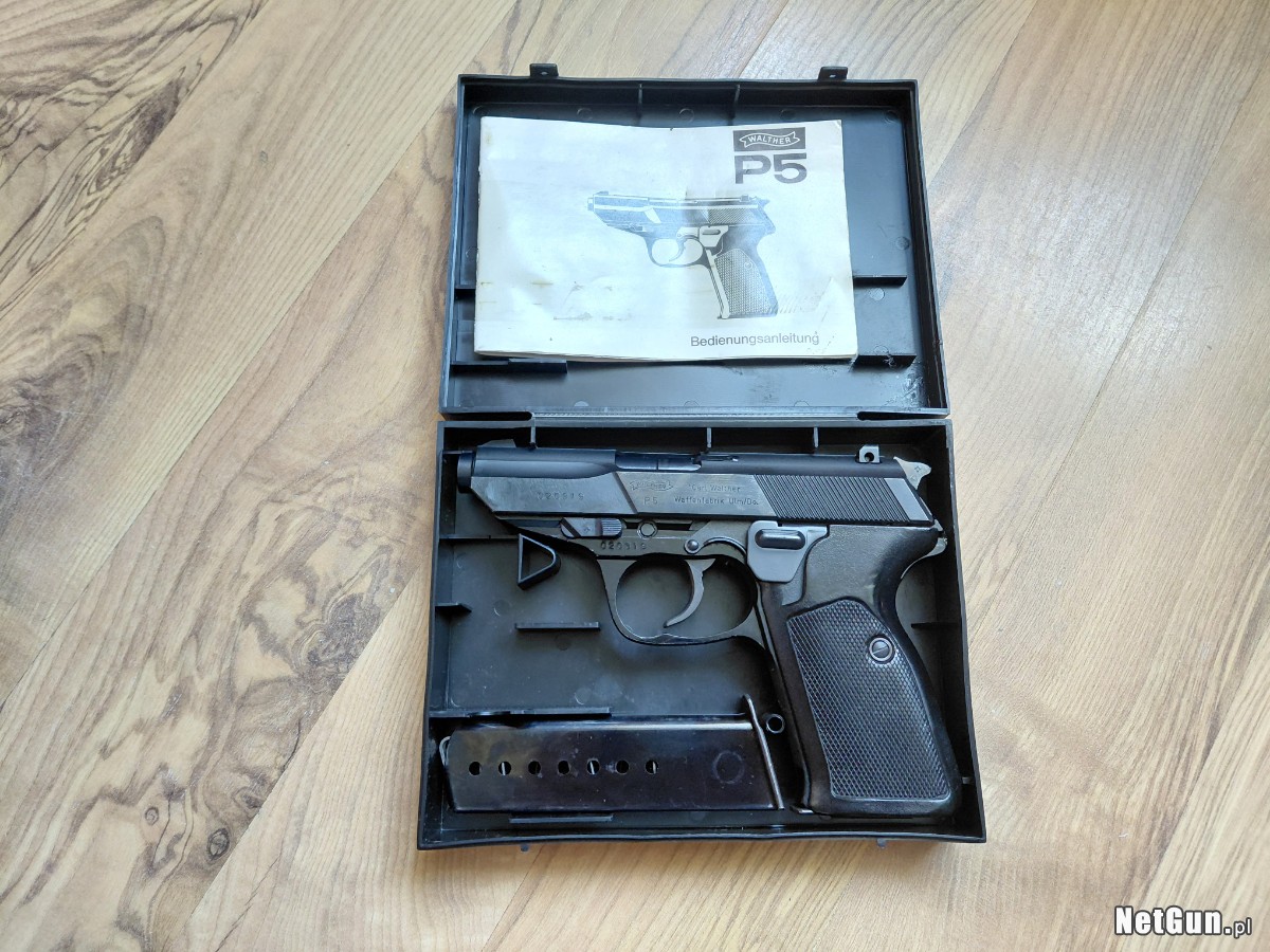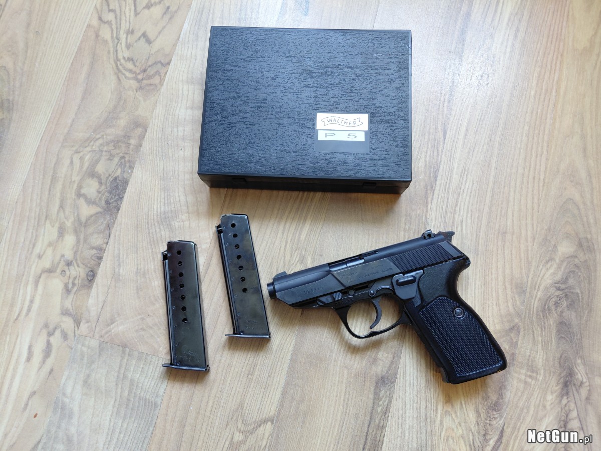 Walther P5, rocznik produkcji 1981, zasilany amunicją 9x19. Dość rzadki, oryginalny pistolet. Stan dobry, posiada ślady użytkowania, w pełni sprawny mechanicznie. W zestawie z oryginalnym pudełkiem, instrukcją i zapasowym magazynkiem. W razie pytań proszę o sms.