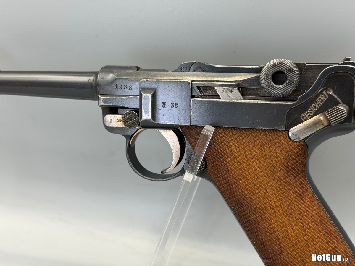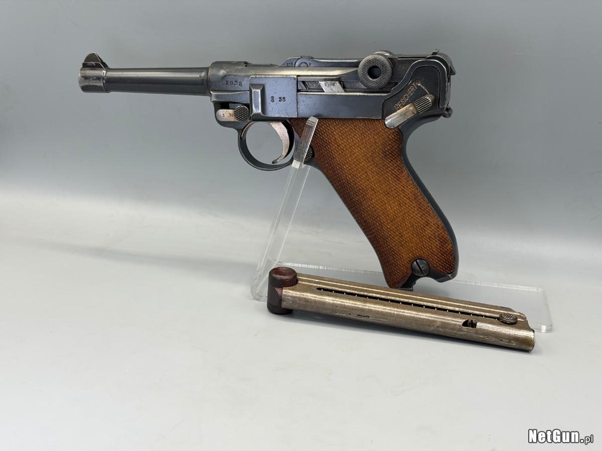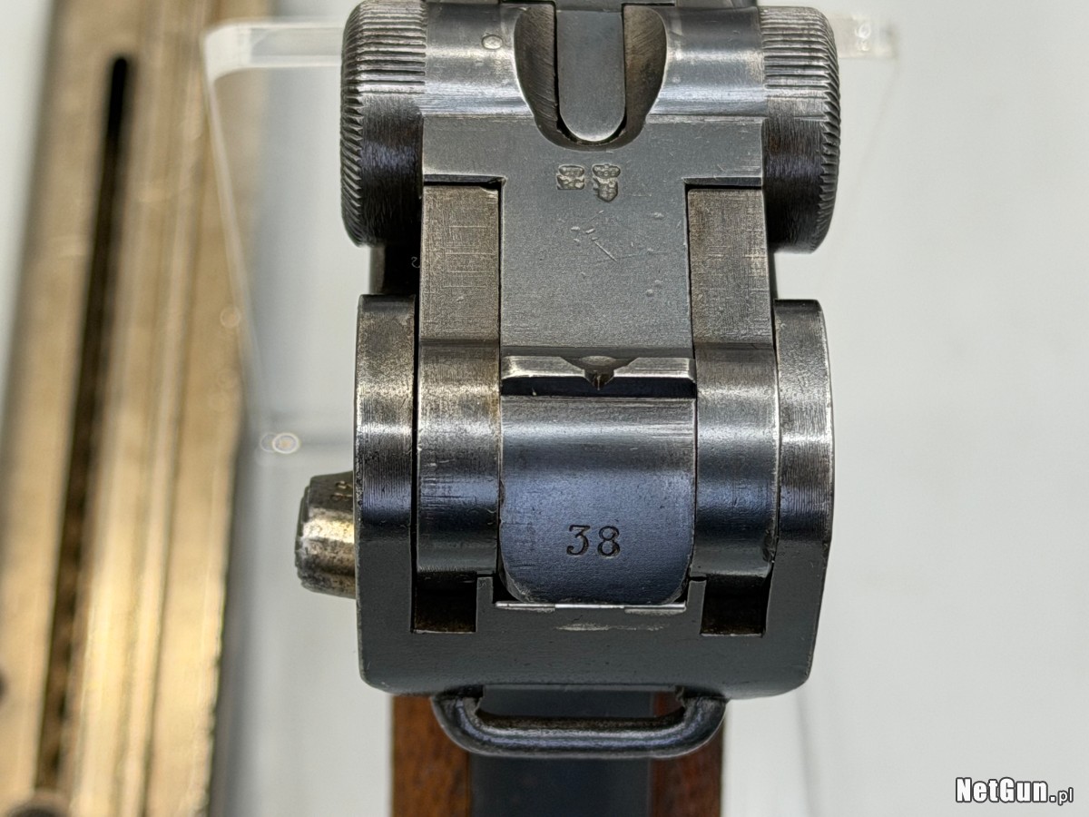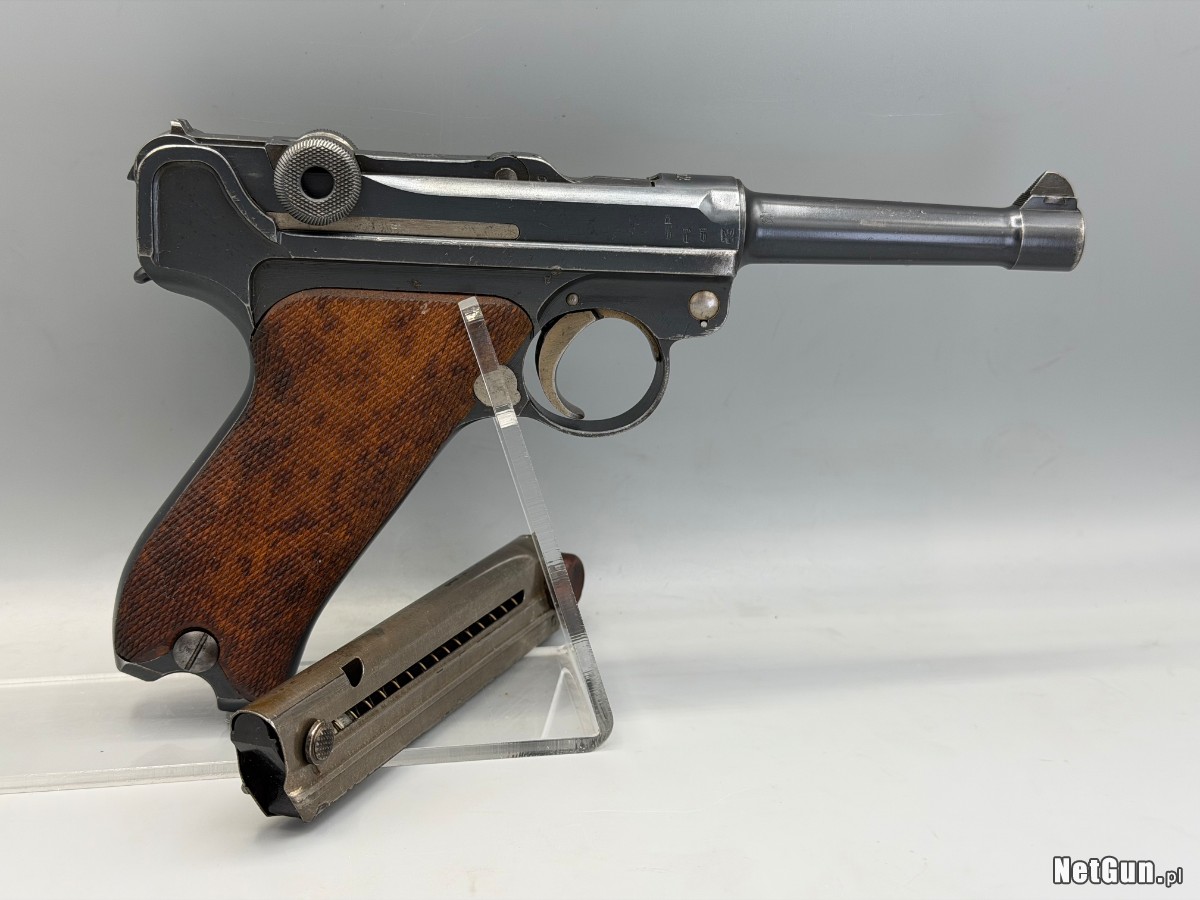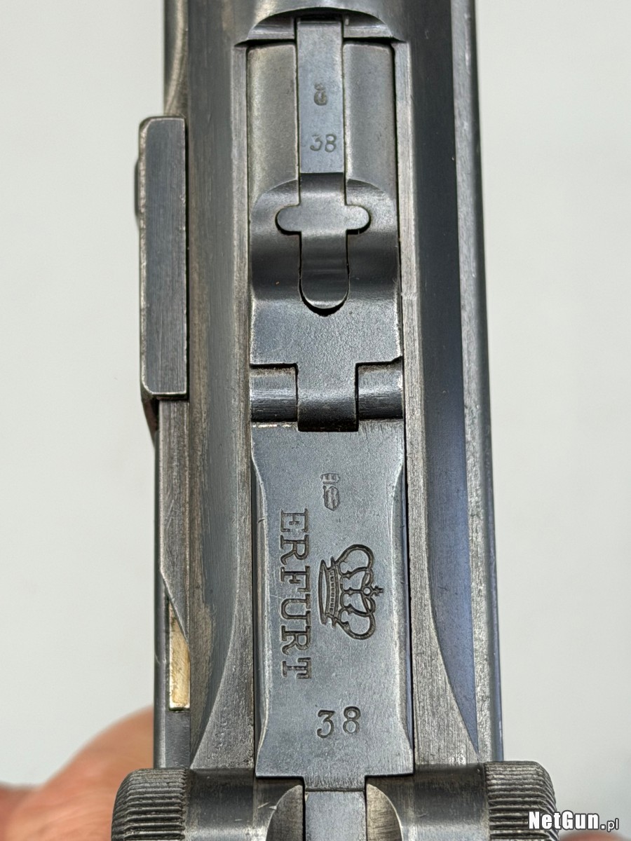 Ładny, oryginalny i zgodny numerycznie Luger P08 wyprodukowany w Królewskim Arsenale w Erfurcie, kaliber 9x19mm. Pod okładkami idealna.
