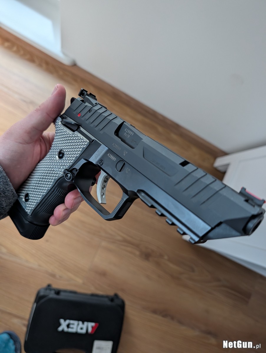 Na sprzedaż Arex Alpha (9x19mm) zakupiony jako nowy w sierpniu 2024 r. u oficjalnego dystrybutora (Hubertus Białystok). Pistolet używany wyłącznie do strzelania statycznego - nigdy nie widział kabury, co gwarantuje brak otarć powłoki.
