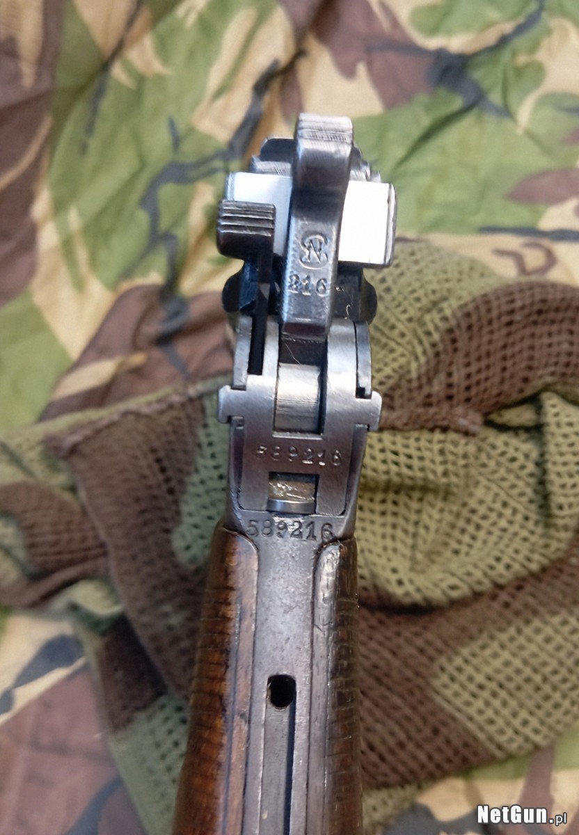Broń zgodna numerycznie, zachowana w oryginalnej konfiguracji (bez konwersji). Widoczne typowe ślady użytkowania i patyna, mechanicznie kompletna.