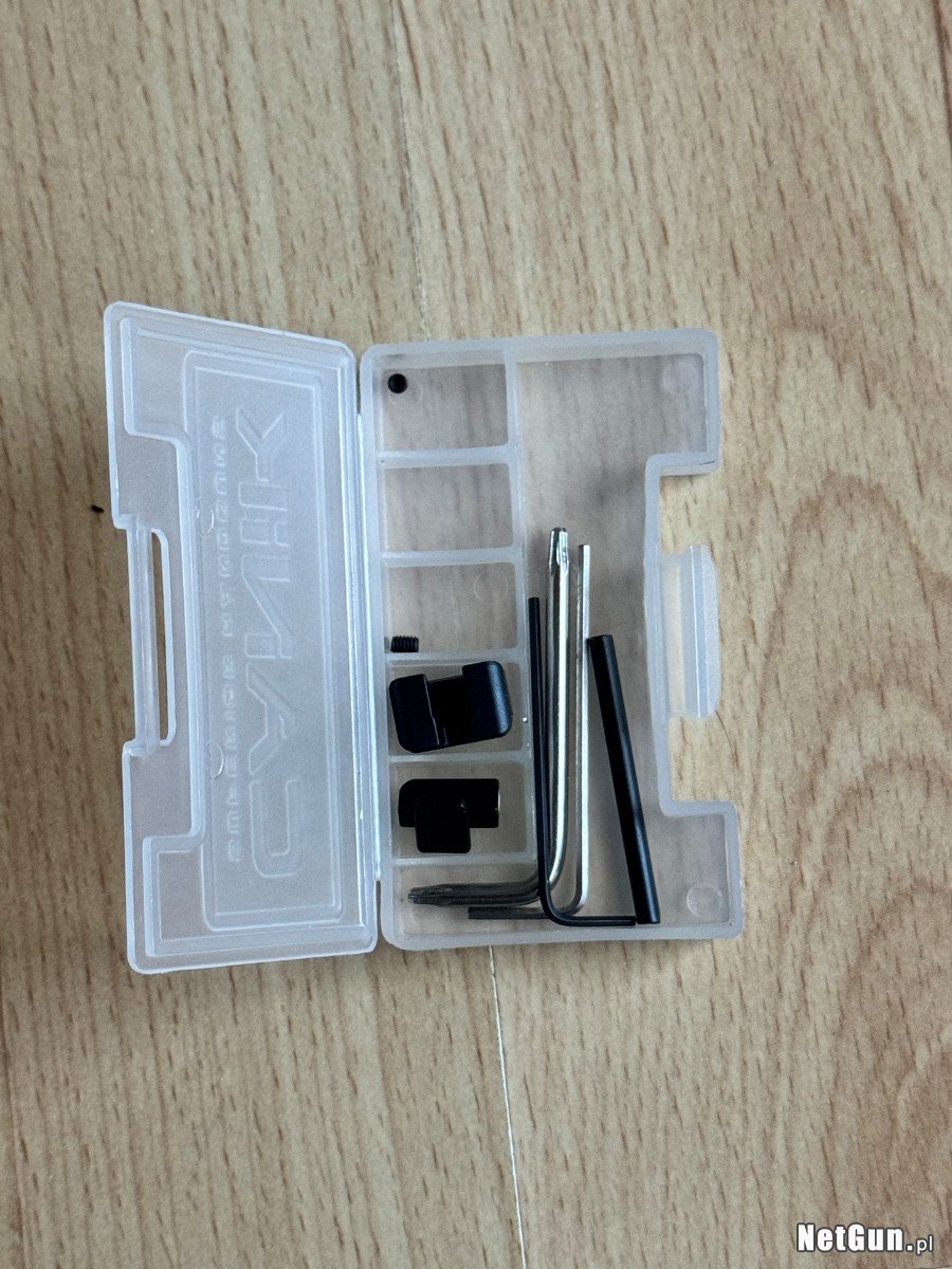 Model CAS posiada w standardzie zamontowane przyrządy Bullseye idealny do skrytego noszenia bez wystających przyrządów celowniczych które mogą haczyć o odzież, oraz płaski, aluminiowy język spustowy
