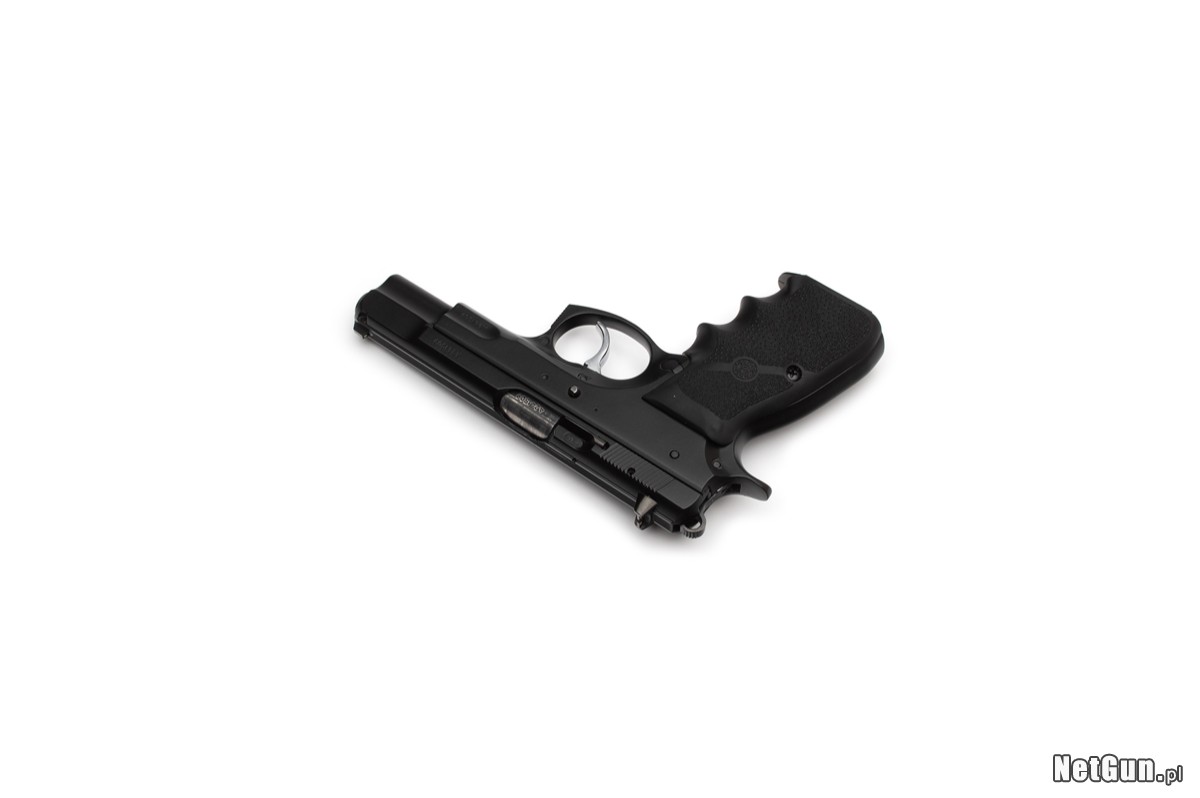 Pistolet samopowtarzalny centralnego zapłonu CZ 75B, kaliber 9x19. Jedna z ostatnich odsłon legendarnego modelu, któremu trudno dorównać większości współczesnych "polimerów". W pełni stalowa konstrukcja, upgrade'owa gumowa rekojeść firmy Hogue (USA), fenomenalnie pracujący mechanizm spustowy. Wersja 75B z samoczynnym bezpiecznikiem w postaci blokady iglicy. Zdecydowanie jedna z najbardziej udanych konstrukcji firmy CZ.