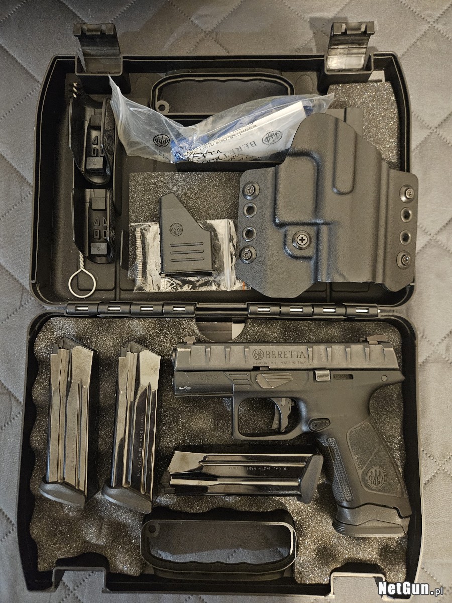 Sprzedam Berette APX CENTURION przebieg około 500 szt. wymieniona sprężyna na zieloną (czarna w komplecie), cztery magazynki (3 15 nab. jeden 17 nab.), plus kabura