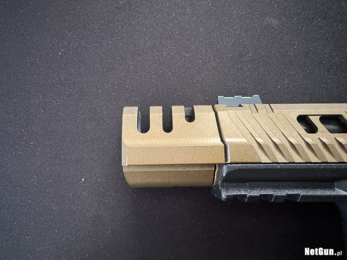 To nie jest „goły” Canik – dzięki kompensatorowi GK Arms pistolet prowadzi się wyjątkowo płasko, co przekłada się na: