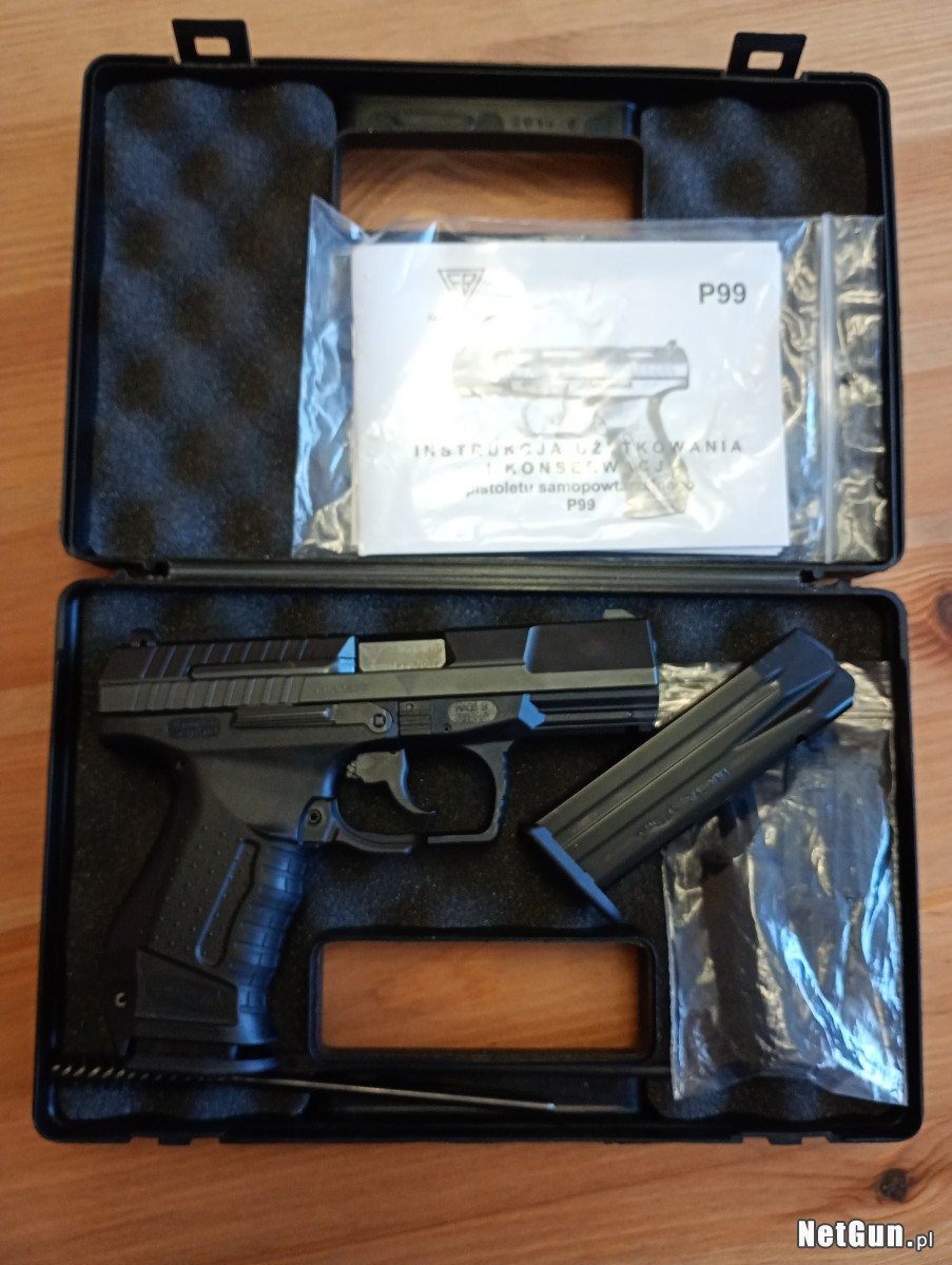 Kompletny fabryczny zestaw z 2 magazynkami na 15 sztuk, 3 okładzinami chwytu, wyciorem, walizką i instrukcją obsługi.