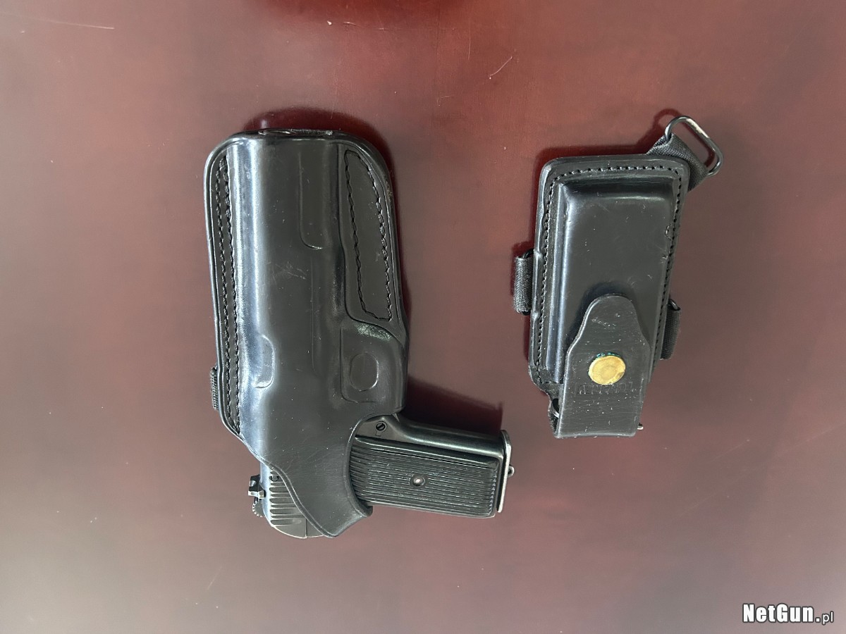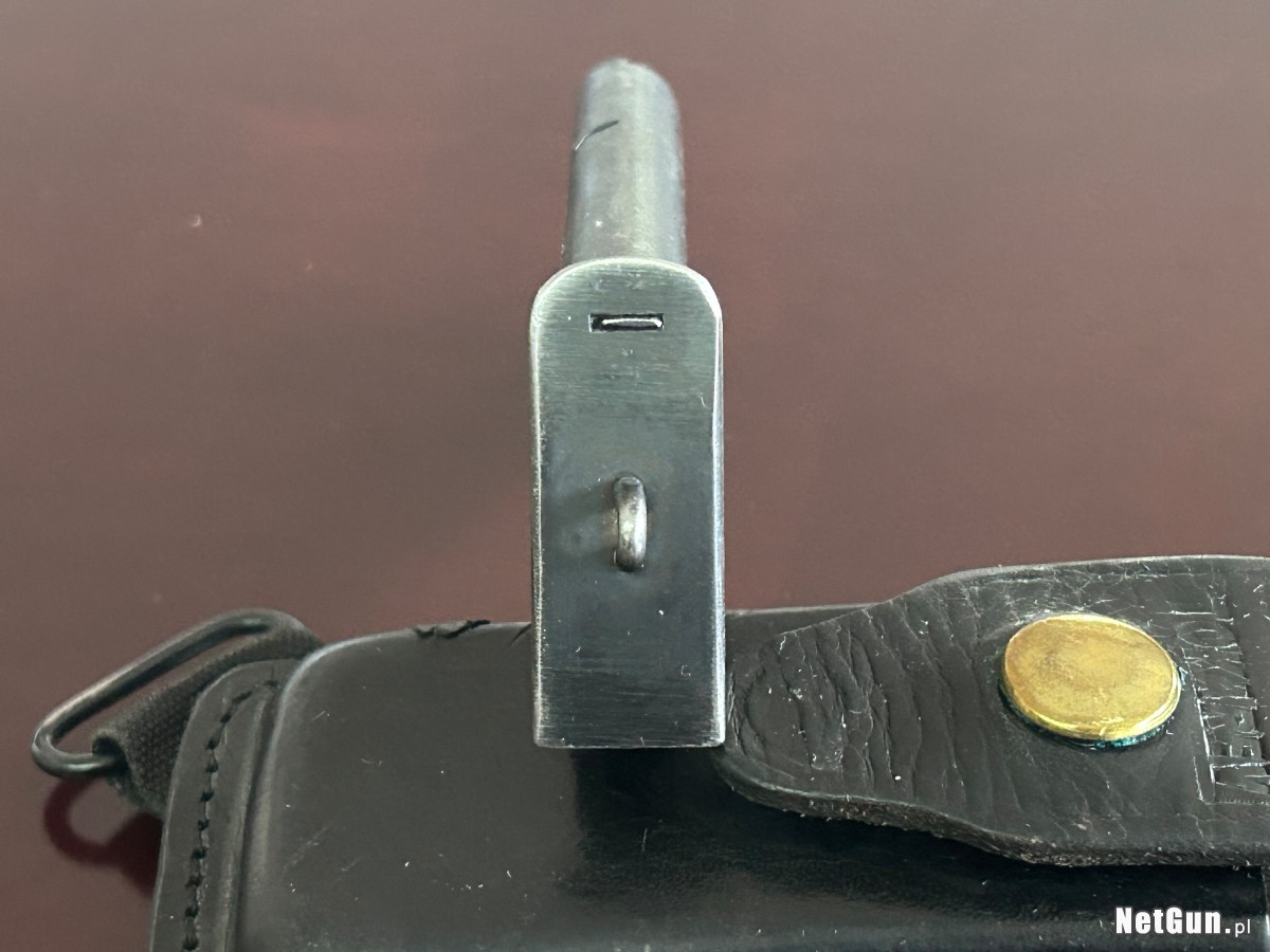 2.Dwa magazynki: jeden z epoki, drugi fabrycznie nowy (czysty zapas magazynowy). 3.Oryginalna czarna skórzana kabura z ładownicą.
