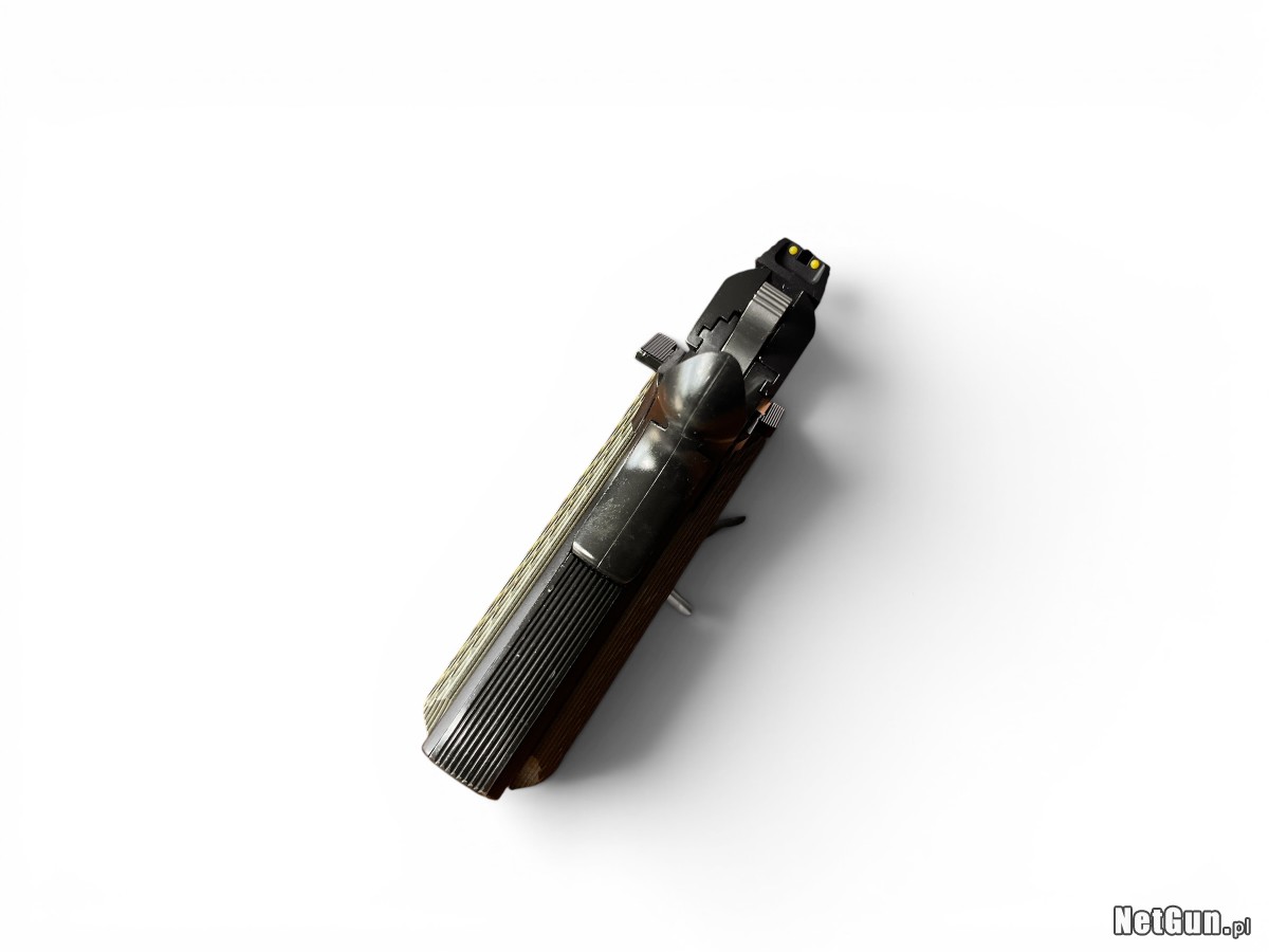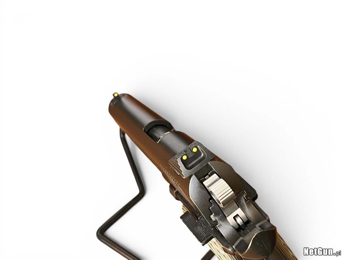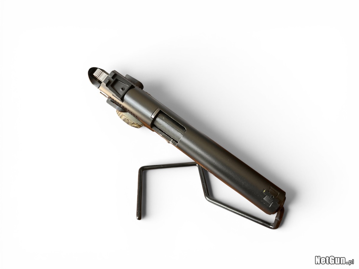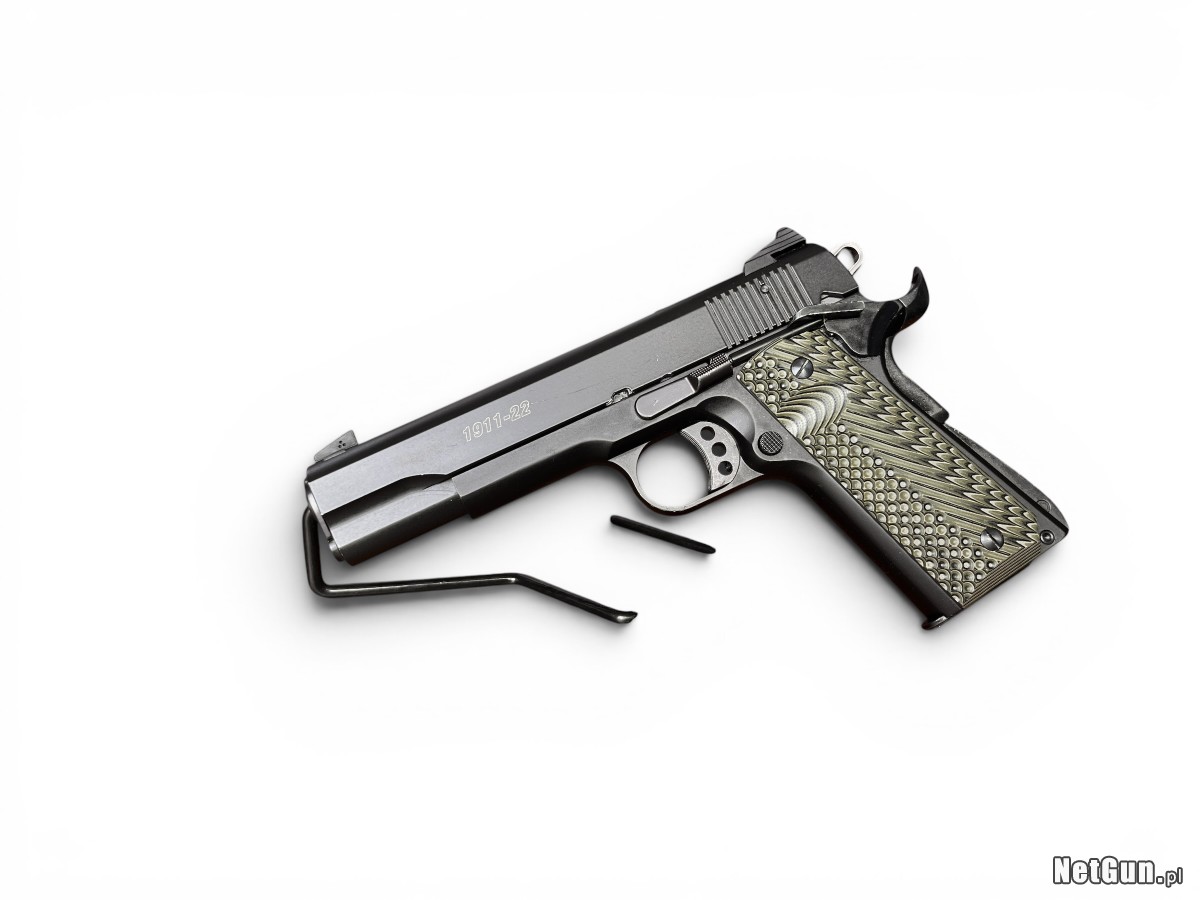 Pistolet samopowtarzalny Sig Sauer 1911-22 z 2017 roku to niemiecko-amerykańska broń w kalibrze .22 LR stylizowana na klasyczny model 1911, jeden z najbardziej rozpoznawalnych pistoletów w historii. Konstrukcja została opracowana jako wersja treningowa, zachowująca ergonomię i obsługę pierwowzoru używanego przez siły zbrojne USA przez dziesięciolecia. Pistolet posiada lekki szkielet, mechanizm odrzutu zamka swobodnego oraz bardzo dobrą ergonomię, co czyni go idealnym do rekreacji i nauki strzelania. Model ten łączy klasyczny wygląd z nowoczesnymi rozwiązaniami i niskim kosztem eksploatacji. Stan: Bardzo dobry -