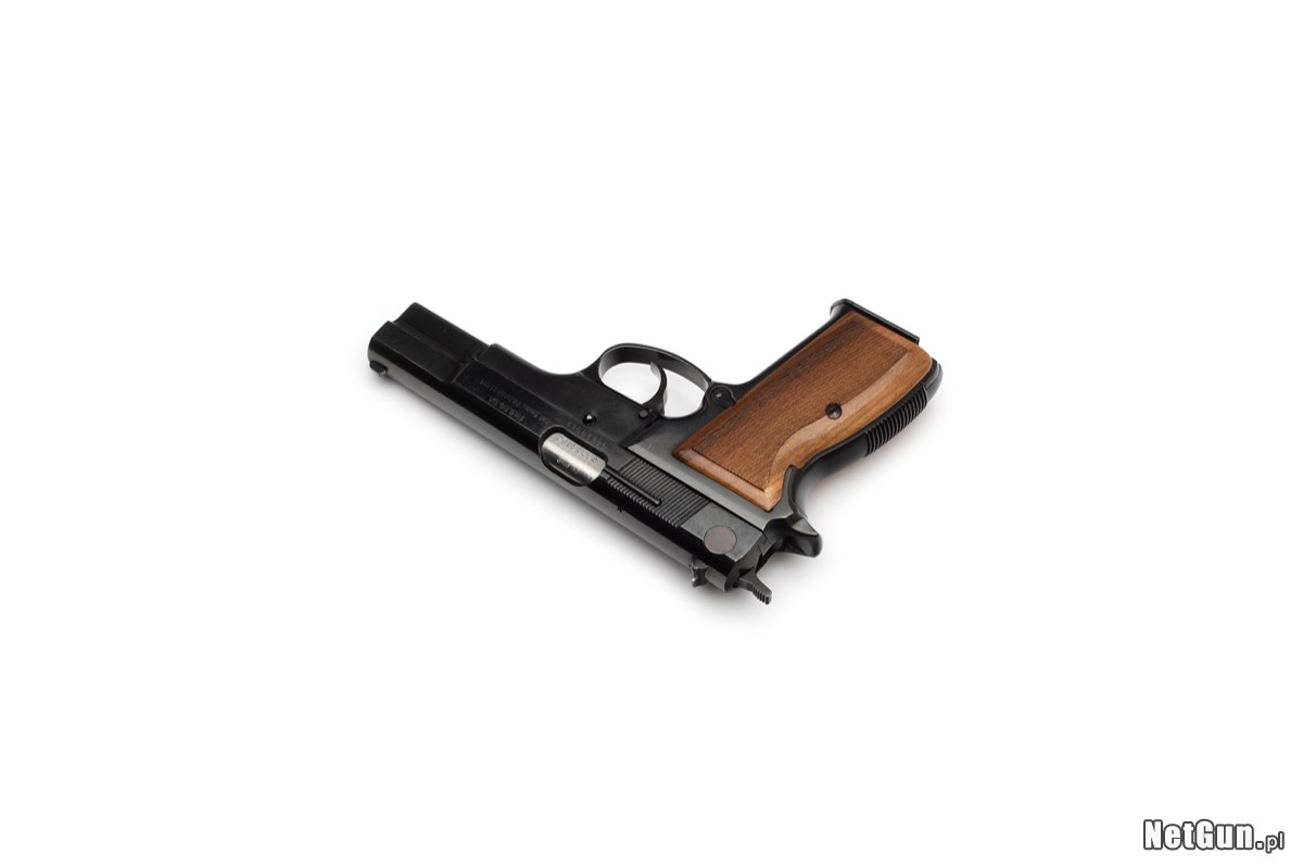 Stan bardzo dobry - SPRAWIA WRAŻENIE NOWEGO. Oksyda w stanie bardzo dobrym - poza kosmetycznymi mikrozarysowaniami, bez zarysowań, wytarć i uszkodzeń (widoczne zmatowienia i nierównomierności powierzchni pochodzą od pozostałości oleju do broni). Przewód lufy w stanie idealnym - krystalicznie nieskazitelny, potwierdzony badaniem boroskopem Hawkeye. Okładziny rękojeści w stanie bardzo dobrym, brak zarysowań, wytarć i uszkodzeń, z w pełni zachowanym lakierem. Pistolet sprawny, po przeglądzie rusznikarskim i testach na strzelnicy. W zestawie dwa magazynki, z których jeden jest wciąż zaolejowany w oryginalnej folii, oryginalna instrukcja oraz oryginalne styropianowe pudełko z obwolutą.