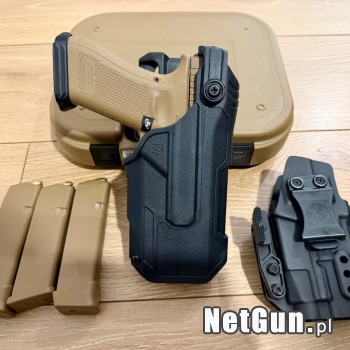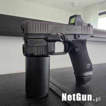 Glock 19x Orginalny zestaw plus duzo dodatkow: - przerywacz ghost (150) - zestaw sprezynek ghost (100) - lejek toni system (500) - zrzut magazynka toni system (100) - kabura iwb doubletap (250) - kabura owb blackhawk (750) - latarka tlr 7x (1100) Kupiony w Czerwcu 2025. 1 raz na strzelni...