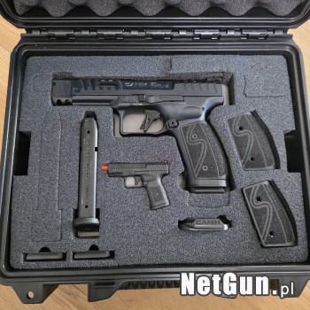 Canik SFx Rival-S zakupiony w marcu tego roku, mój pierwszy pistolet. Przebieg około 400 strzałów - tylko do tarczy. Zadbany, czysty, jedyne ślady używania na magazynkach. Komplet jak ze sklepu.