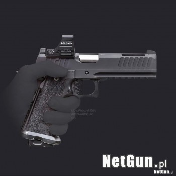 Świetny pistolet w wersji Optic Ready, który fabrycznie jest już lepszy od Glocka 19 a ten egzemplarz dodatkowo po zakupie trafił do rusznikarza na wymianę wielu podzespołów na zestaw od Toni System. Wymieniono spust na metalowy, wymieniono sprężyny, założono sprężynę powrotną competition i metalow...