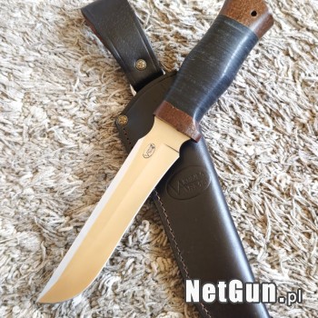Sprzedam spory solidny nóż ze stali D2 z Varmsa, o typowo myśliwskim przeznaczeniu. Solidnie spasowany, wykonany z super dokładnością. B.ostry, to ważne. Wygodna rękojeść została wykonana ze sprasowanej skóry i mikarty. Dobrze wpasowuje się w dłoń podczas pewnego, mocnego chwytu. Na końcu otwór n...