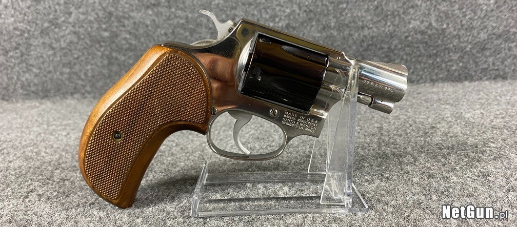 Rewolwer Smith & Wesson mod. 60 w kal. 38Special z 1979 roku. Lufa 1,875" jak nowa. Spust i kurek ze stali nierdzewnej. Chwyty "customowe" w idealnym stanie.
