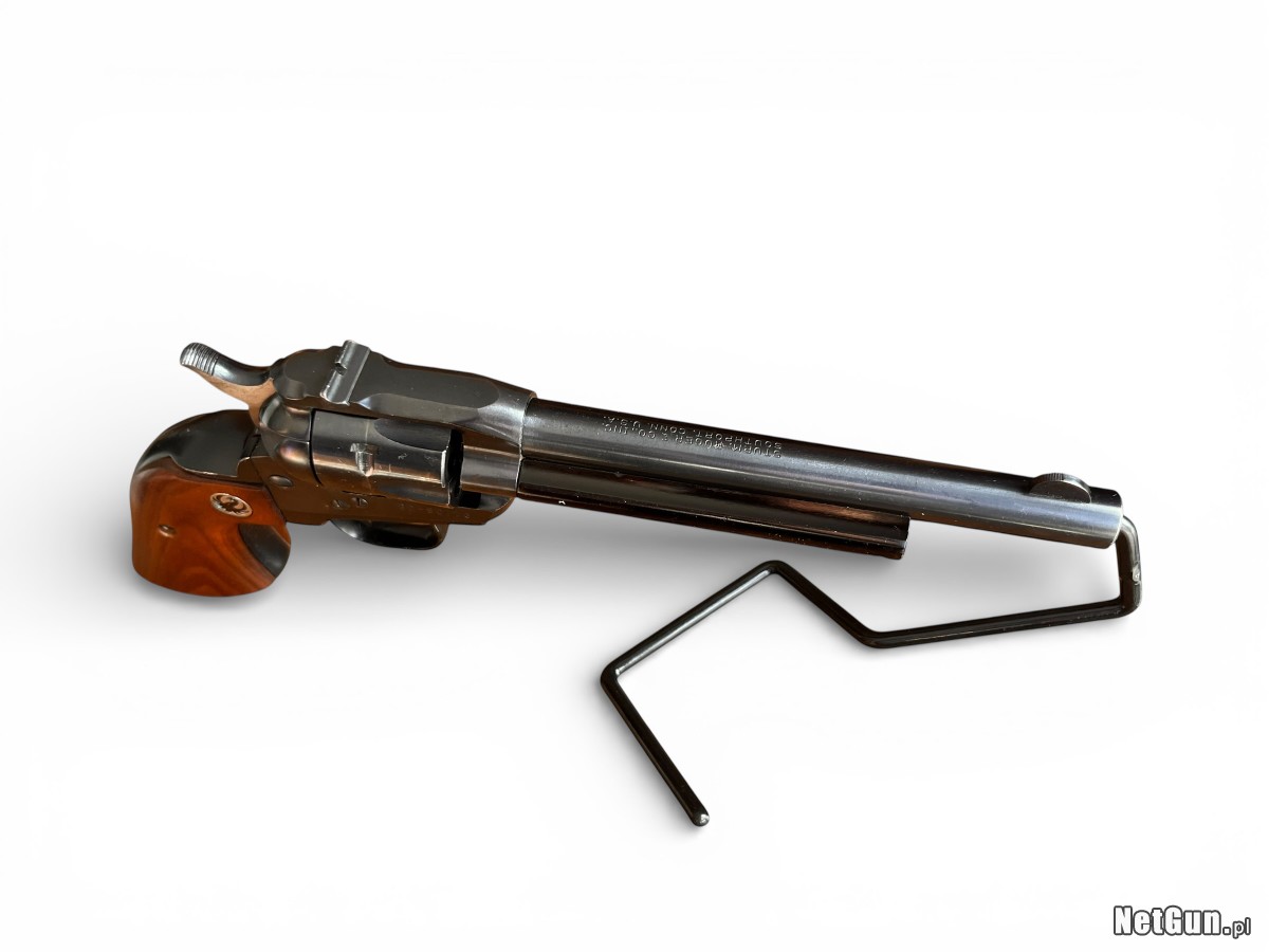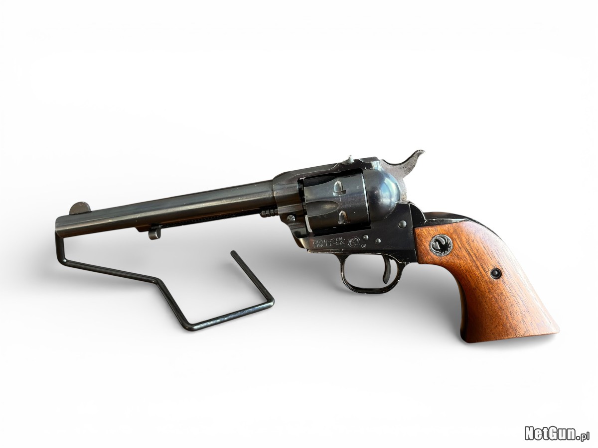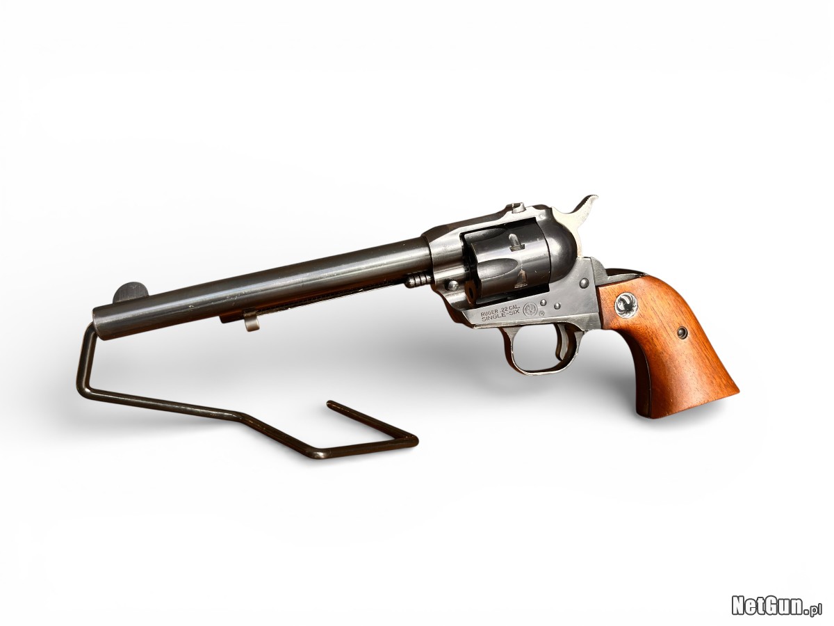 Ruger Single Six w kalibrze .22lr to klasyczny rewolwer jednostrzałowy, zaprojektowany przez amerykańską firmę Ruger w połowie XX wieku głównie do rekreacyjnego strzelania oraz zastosowań sportowych. Konstrukcja opiera się na tradycyjnym mechanizmie kurkowym single action, wymagającym napięcia kurka przed każdym strzałem. Model ten wyróżnia się solidną ramą oraz długą, 6,5-calową lufą, co przekłada się na stabilność podczas użytkowania. Single Six był popularny wśród strzelców sportowych i rekreacyjnych w Stanach Zjednoczonych, a jego wygląd nawiązuje do klasycznych rewolwerów Dzikiego Zachodu. Stan Dobry, oznacza że są widoczne ślady użytkowania, ale broń pozostaje w pełni sprawna technicznie. Broń dostępna w Fortguns obok Dęblina. Jest możliwość przestrzelania przed zakupem na prywatnej strzelnicy. Kontakt: 666 366 361.