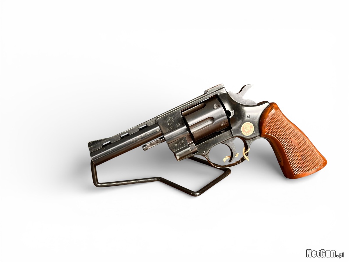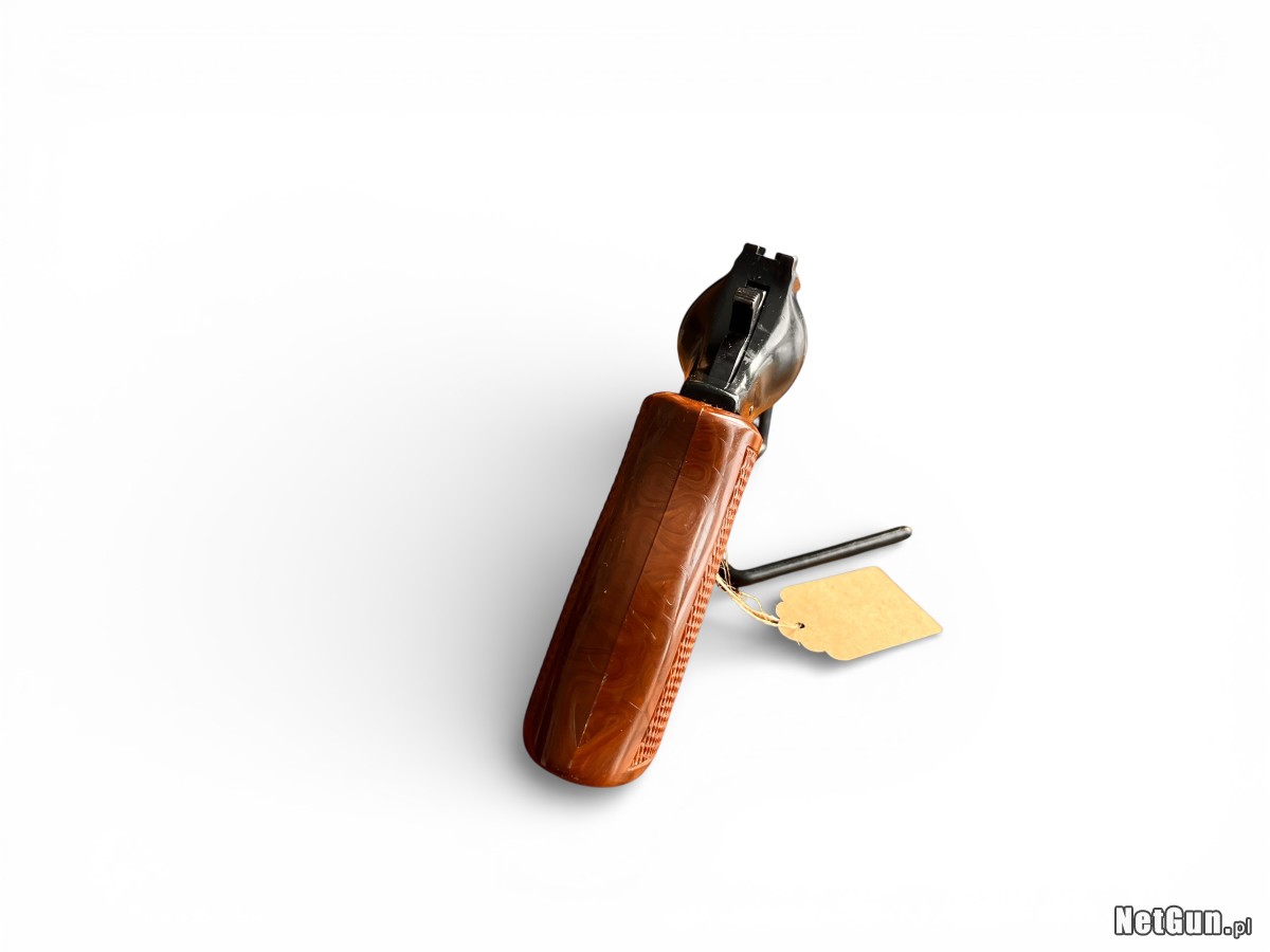 Rewolwer Arminius HW38 to niemiecka broń w kalibrze .38 Special produkowana przez firmę Hermann Weihrauch, znaną z solidnych konstrukcji broni palnej i pneumatycznej. Modele z serii Arminius powstawały głównie z myślą o rynku cywilnym jako broń do obrony osobistej oraz strzelectwa rekreacyjnego. Konstrukcja oparta jest na klasycznym mechanizmie DA/SA, który umożliwia strzelanie zarówno z samonapinania, jak i po ręcznym napięciu kurka. Rewolwer charakteryzuje się prostą i trwałą budową oraz dobrą ergonomią chwytu. Egzemplarz posiada lufę o długości 10 cm, zapewniającą dobrą celność podczas strzelania rekreacyjnego. Stan: Średni