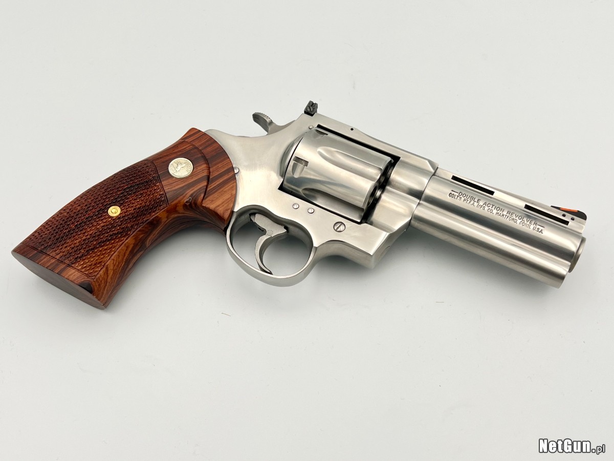 Na sprzedaż wystawiam jeden ze swoich najlepszych egzemplarzy legendarny rewolwer Colt Anaconda z 4-calową lufą – jeden z rzadziej spotykanych wariantów tej kultowej konstrukcji w wersji inox.