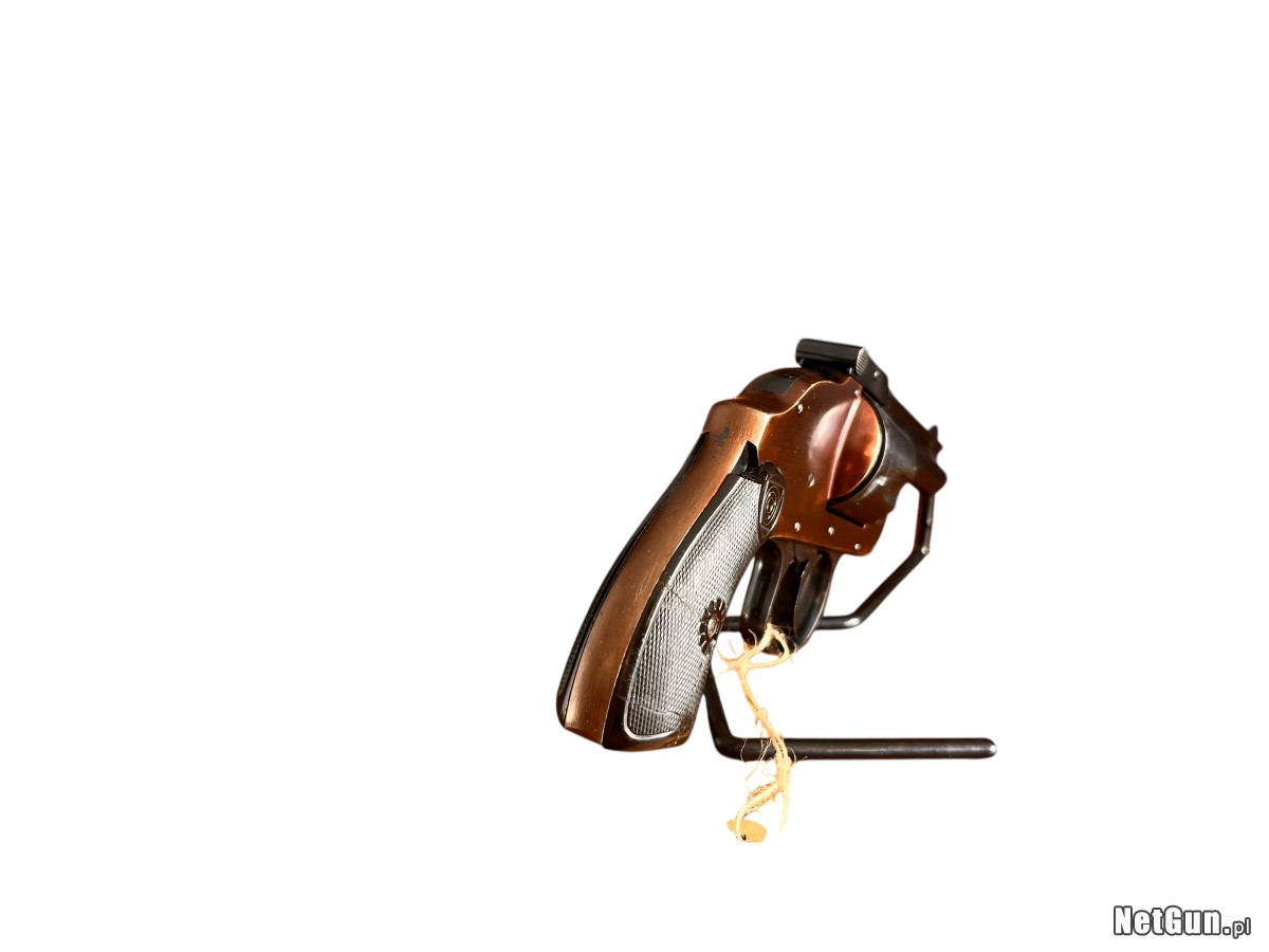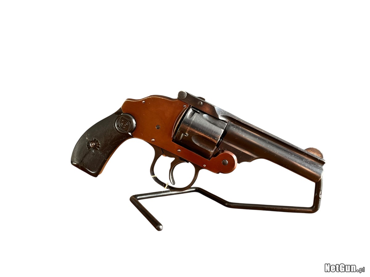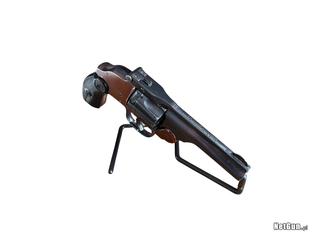 Rewolwer Harrington & Richardson Safety Hammerless to klasyczna amerykańska broń w kalibrze .38 S&W produkowana przez firmę H&R na przełomie XIX i XX wieku jako rewolwer do obrony osobistej. Model ten wyróżnia się bezkurkową konstrukcją (tzw. hammerless), która zwiększa bezpieczeństwo noszenia oraz zapobiega zahaczaniu o odzież. Rewolwery H&R były szeroko używane na rynku cywilnym w USA jako broń kieszonkowa oraz do codziennej ochrony. Konstrukcja oparta jest na mechanizmie DA, co zapewnia prostotę obsługi i szybkie oddanie strzału. Lufa o długości 3” zapewnia kompaktowe wymiary przy zachowaniu dobrej celności na krótkim dystansie. Stan: Dobry