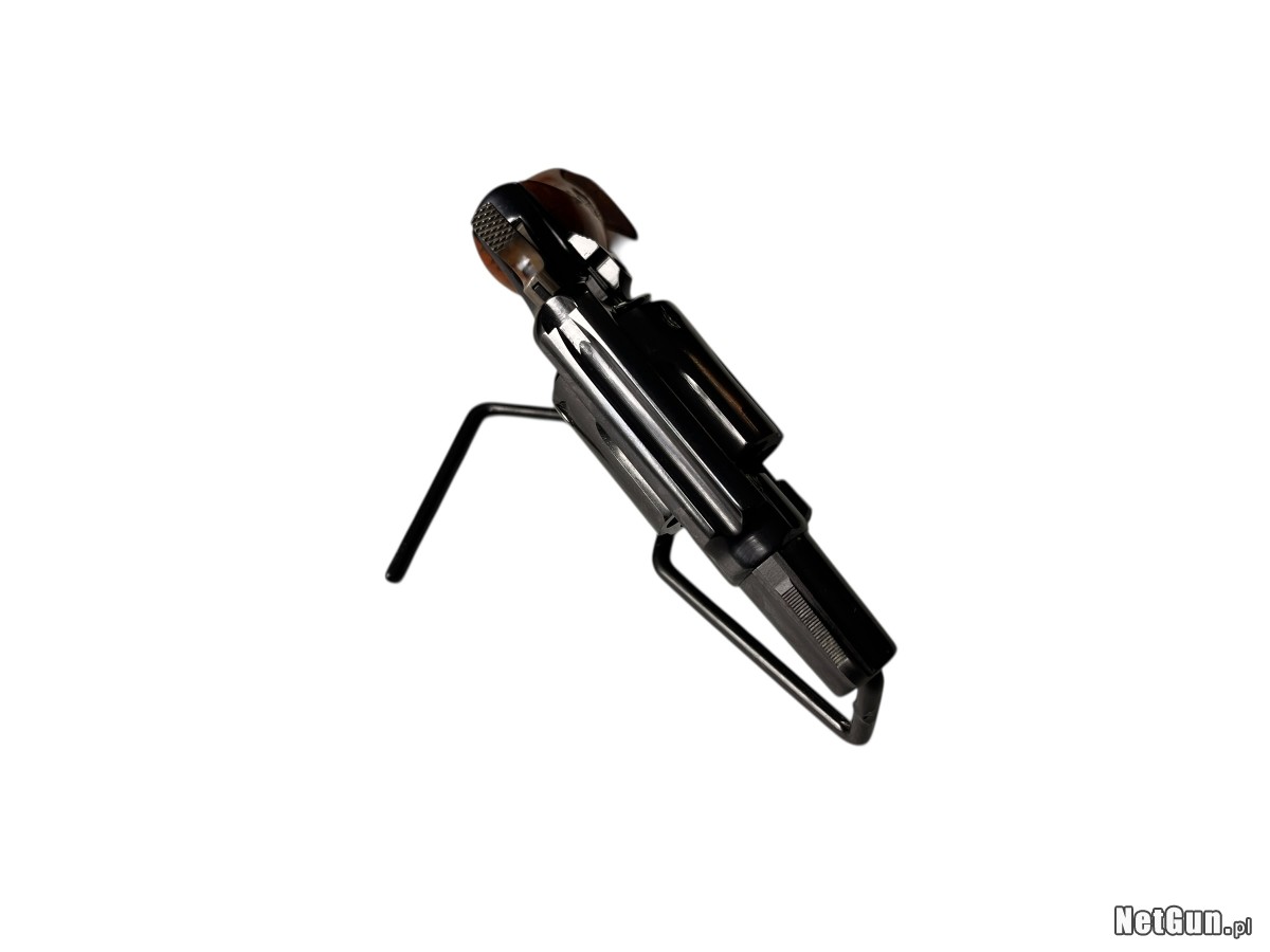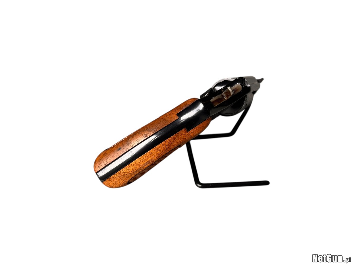 Rewolwer Smith & Wesson Model 10-6 to klasyczna amerykańska broń w kalibrze .38 Special należąca do legendarnej serii Military & Police (K-Frame), produkowanej nieprzerwanie od końca XIX wieku. Model ten był przez dziesięciolecia standardowym wyposażeniem licznych jednostek policji w Stanach Zjednoczonych oraz wielu formacji na całym świecie, co świadczy o jego niezawodności i sprawdzonej konstrukcji. Rewolwer charakteryzuje się solidną stalową budową, bardzo dobrym mechanizmem spustowym DA/SA oraz doskonałą ergonomią. Dzięki swojej prostocie i trwałości do dziś pozostaje ceniony zarówno przez kolekcjonerów, jak i strzelców rekreacyjnych. Stan: Bardzo dobry -