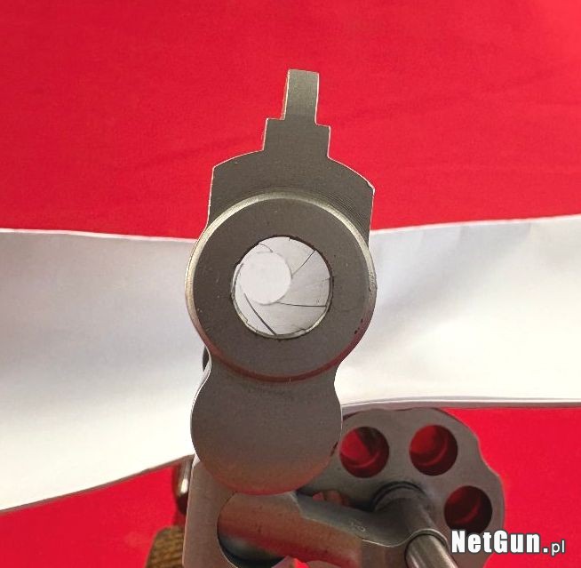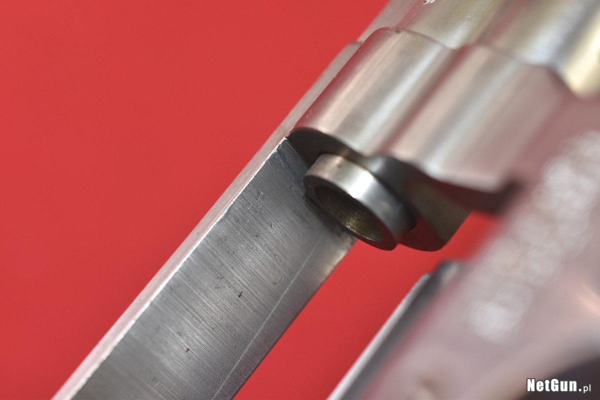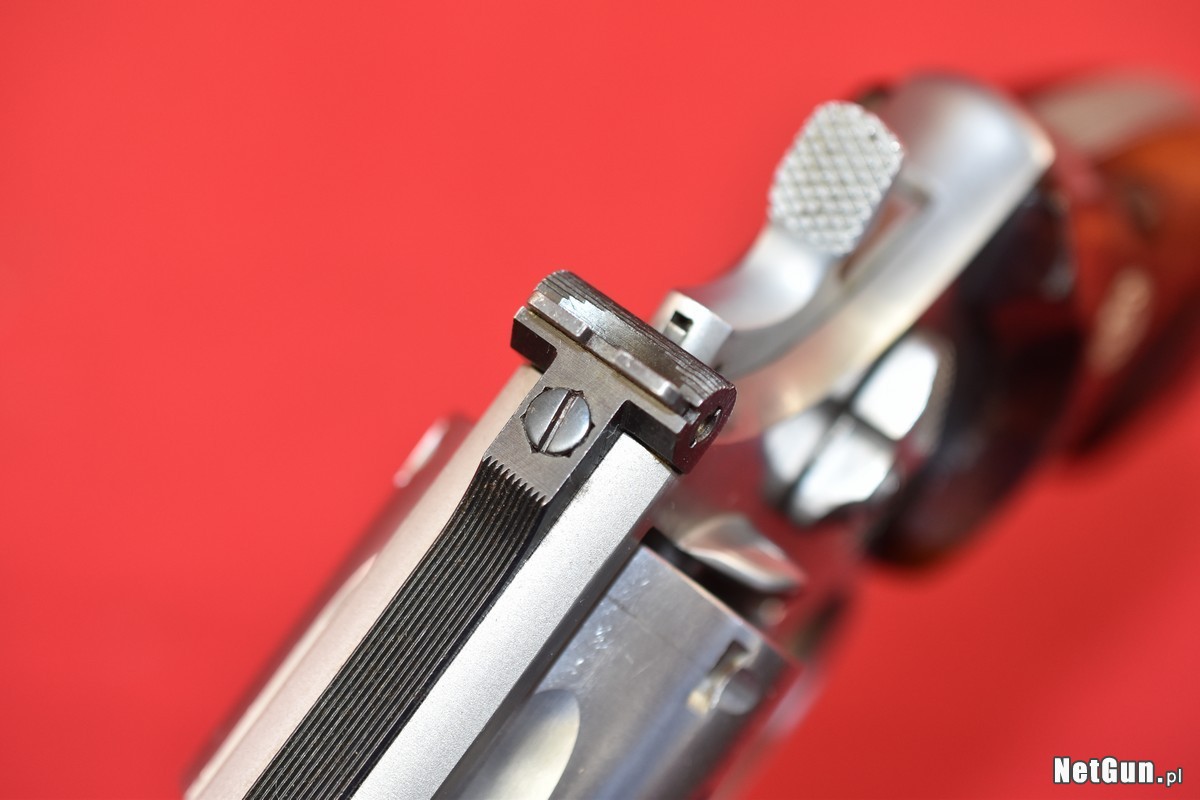 Mało używany egzemplarz, w bardzo dobrym stanie. O jego stanie świadczy stan ramy w pobliżu wlotu lufy - nie ma na niej śladu wypalenia od strzelania amunicją .357 Magnum. W mocno eksploatowanych egzemplarzach najpierw pojawia się tam ciemny kolor, a potem tworzy się wyraźnie widoczna i wyczuwalna palcem bruzda. Tutaj - patrz zdjęcia.