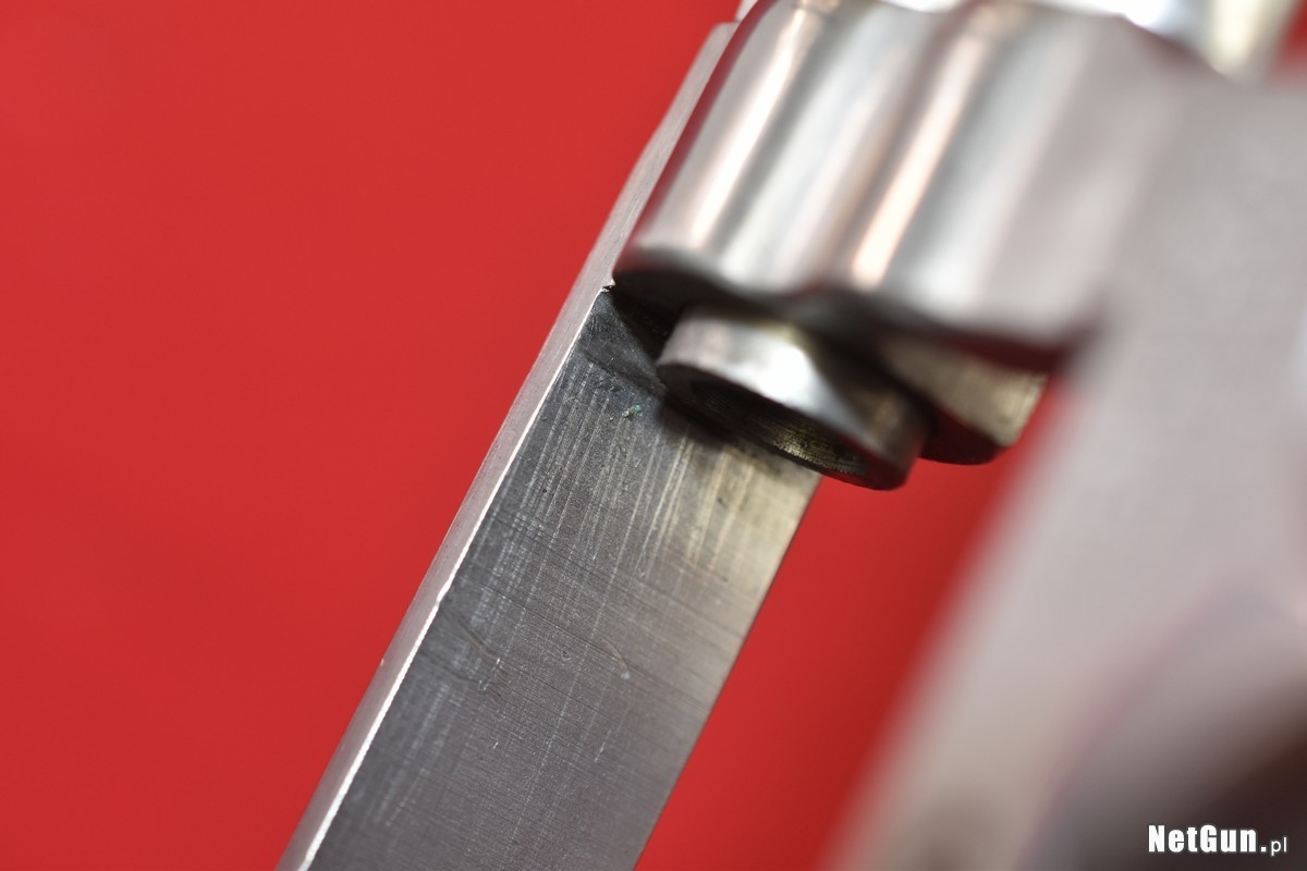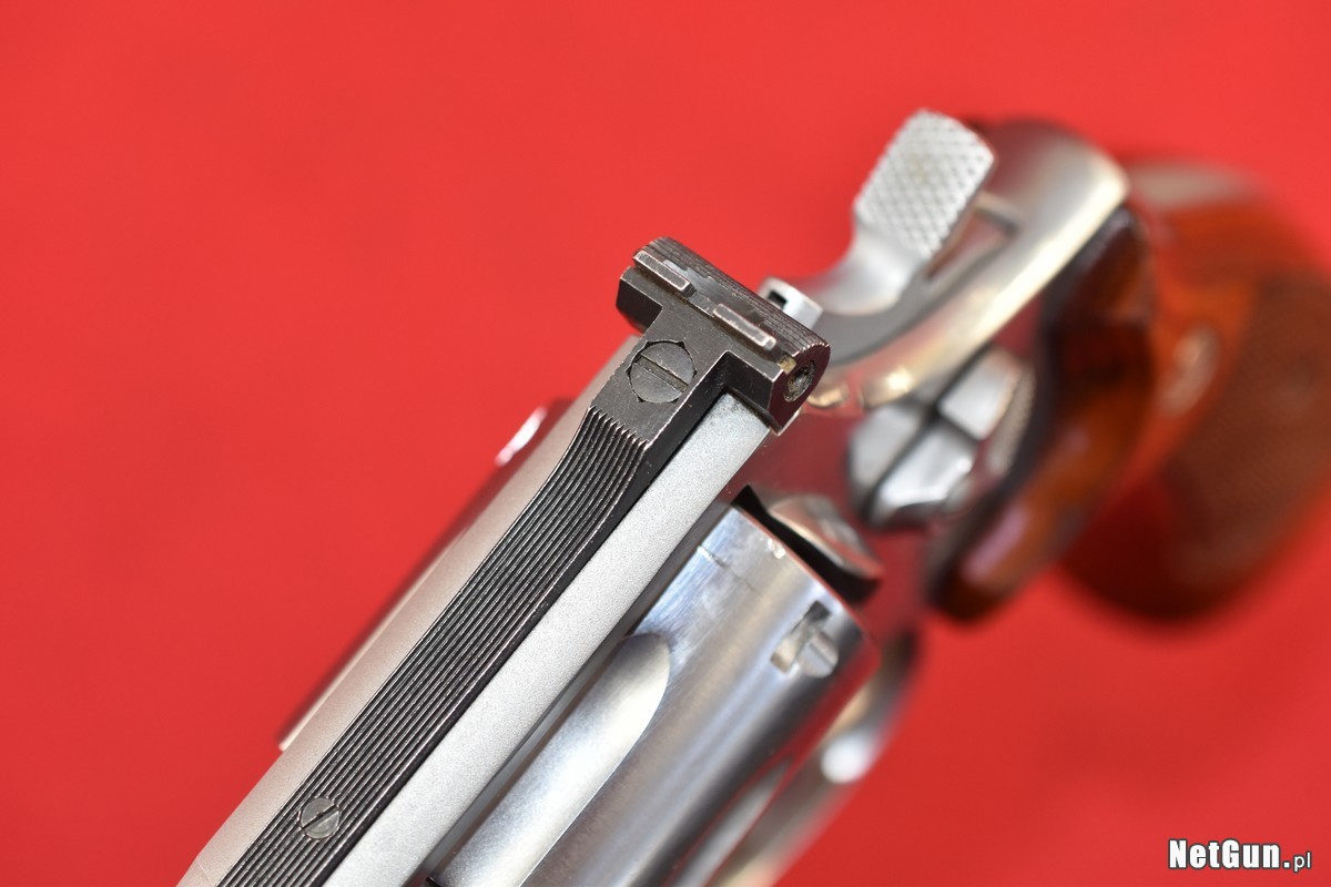 Mało używany egzemplarz, w bardzo dobrym stanie. O jego stanie świadczy stan ramy w pobliżu wlotu lufy - nie ma na niej śladu wypalenia od strzelania amunicją .357 Magnum. W mocno eksploatowanych egzemplarzach najpierw pojawia się tam silne zaciemnienie - a potem tworzy się wyraźnie widoczna i wyczuwalna palcem bruzda. Tutaj - patrz zdjęcia.