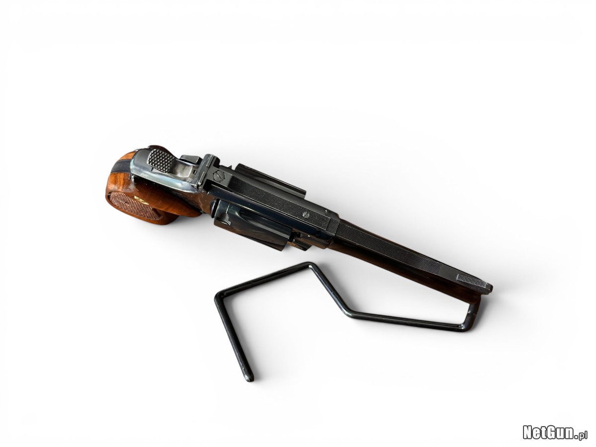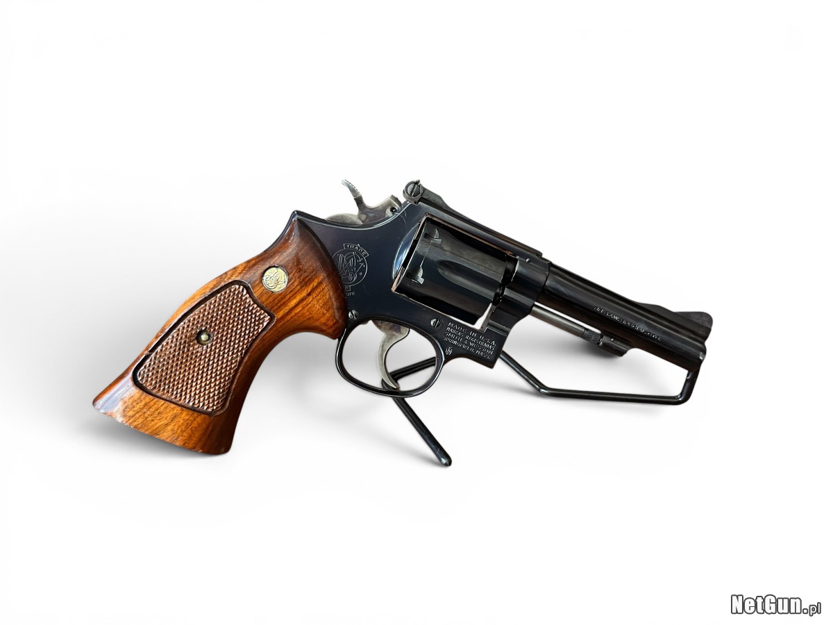 Rewolwer Smith & Wesson Model 15-4 z 1980 roku to klasyczna amerykańska broń w kalibrze .38 Special należąca do serii K-Frame, znana jako „Combat Masterpiece”. Model ten był przez wiele lat wykorzystywany przez liczne jednostki policji w Stanach Zjednoczonych oraz formacje służbowe na całym świecie. Konstrukcja charakteryzuje się bardzo dobrym mechanizmem spustowym DA/SA, solidną stalową budową oraz świetną ergonomią. Lufa o długości 4” zapewnia dobrą celność i uniwersalność zastosowań zarówno w strzelectwie rekreacyjnym, jak i treningowym. Rewolwery tej serii cenione są za trwałość i wysoką jakość wykonania. Stan: Dobry +